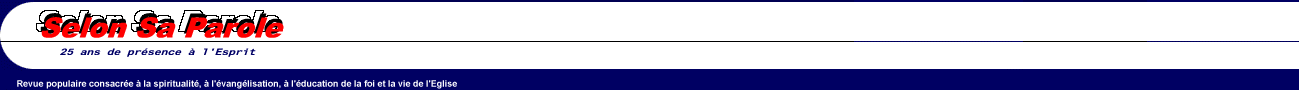 Selon Sa Parole janvier-février vol. 28 numéro 1